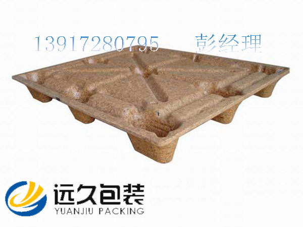 模壓托盤全稱是植物纖維模壓平面工業托盤,以廢棄木料、植物秸稈等為原料,通過專業的設備對原材料進行破碎、蒸汽干燥及熱處理,面板和9個支撐腳一次模壓成型,托盤板上表面平整光滑,下表面設有加強筋。板面縱橫受力均衡,九個腳分布能滿足鏟車四向插入,是整體結構。