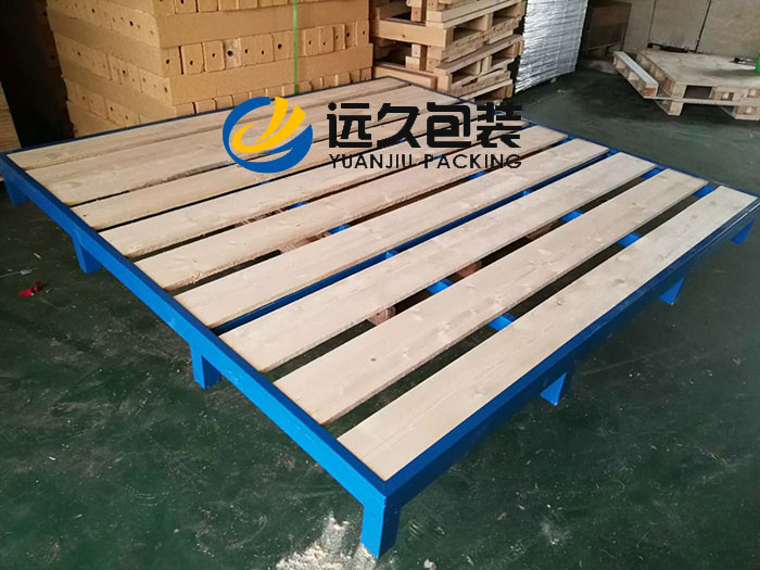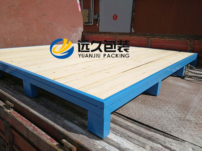 鋼結構托盤一般只是為了解決較重貨物的承載問題才選用,如果對托盤強度要求非常高,而且又要一定程度上控制托盤的自重和成本,就需要通過改善結構設計來克服金屬托盤自重大、成本高這一缺點。在這種市場需求客戶需要的情形下,我司研發了一款金屬鋼制框架重型木托盤,很好的解決了既可以控制成本,又有高強度的托盤品種。