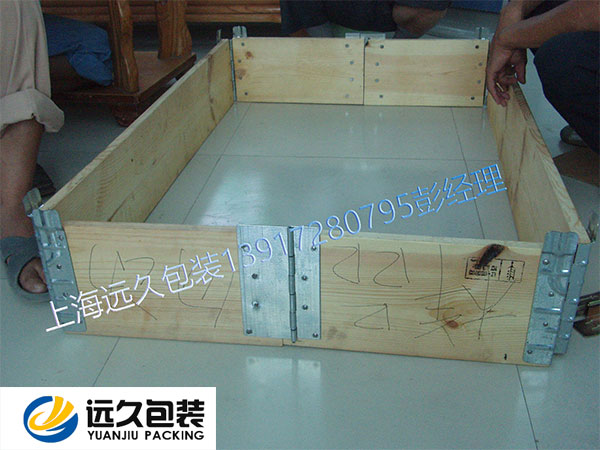 另外,木圍框在沒有使用時,折疊起來的長度會占用很大的空間,降低倉庫的使用率,而加上中間的鉸鏈后,長度會縮短三分之一;所以在循環包裝系統里,比起同樣是循環使用的卡扣木箱包裝,方便靈活的六鉸鏈圍框木箱優勢更加明顯。