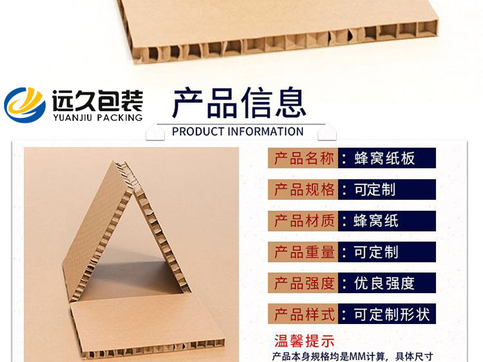 蜂窩紙板全部由可循環(huán)再生的紙材制作,可節(jié)木代木,以質(zhì)輕、價(jià)廉、強(qiáng)度高、可回收等特性深受市場(chǎng)歡迎,已成為具有節(jié)省資源、保護(hù)環(huán)境的一種新型綠色包裝。 由蜂窩紙板制作的包裝箱是中國(guó)出口商品的理想包裝,蜂窩紙板的推廣應(yīng)用,一方面可降低商品在流通過程中的破損率;另一方面,取代木箱,利于環(huán)保。 蜂窩紙板的性能: 1、從力學(xué)角度分析蜂窩紙板,封閉的等六邊形蜂窩結(jié)構(gòu)相比其它結(jié)構(gòu),能以最少的材料獲得最大的受力。紙蜂窩夾芯是把無數(shù)個(gè)空心立體六角形用膠接法連接成一個(gè)整體受力件。所以蜂窩紙承載能力大,抗壓性能好(紙蜂窩夾芯平壓強(qiáng)度比瓦楞紙芯強(qiáng)度大20 倍以上)。 2、由于紙蜂窩夾芯的結(jié)構(gòu),吸收物體撞擊能量大,所以防震性能好,隔熱、隔音效果好。 3、重量輕并且省紙張,蜂窩紙板受垂直于板面的載荷時(shí),它的彎曲剛度與同材料、同厚度的實(shí)心板相差無幾,但重量卻輕70~90%,而且不易變形,使得蜂窩紙板可以被廣泛用于多種應(yīng)用領(lǐng)域。(一張一平方米的紙,可以制作一張5毫米厚、一平方米大小的紙蜂窩夾芯。用紙蜂窩夾芯做包裝箱,比同規(guī)格瓦楞紙包裝輕三分之一)。 4、蜂窩紙板易于切削、鉆孔,可以加工成各種所需的形狀和尺寸。同時(shí),它與其它結(jié)構(gòu)材料有很好的相容性,適合用作緩沖襯墊。 在全球環(huán)保低碳化包裝的形式下,中國(guó)包裝工業(yè)在向低碳經(jīng)濟(jì)轉(zhuǎn)型中,提出了“以紙代木”的重大決策,環(huán)保蜂窩紙板全部由可循環(huán)再生的紙材制作,可節(jié)木代木,以前出口運(yùn)輸包裝首選的木箱包裝在很多行業(yè)已經(jīng)被蜂窩紙板包裝箱取代。蜂窩紙板包裝箱的推廣應(yīng)用,一方面可降低商品在流通過程中的破損率;另一方面,取代木箱包裝利于環(huán)保保護(hù)森林資源。 環(huán)保蜂窩紙板使用后可全部回收再利用。即使棄之不用,也可自然降解、吸收,是很好的綠色環(huán)保材料。蜂窩紙板由柔性的紙芯和面紙做成,具有較好的韌性和回彈性,獨(dú)特的蜂窩夾芯結(jié)構(gòu)提供了優(yōu)異的緩沖性能,在所有的緩沖材料中具有更高的單位體積能量吸收值,高厚度的環(huán)保蜂窩紙板可替代現(xiàn)已大量使用的eps塑料泡沫緩沖墊。